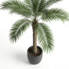In a container, the Pygmy Date Palm typically reaches heights of 1.5 to 2 meters (5 to 6.5 feet). When planted in the ground in ideal conditions, it can eventually reach up to 3 meters (10 feet). The frond spread usually spans between 1 and 1.5 meters.
